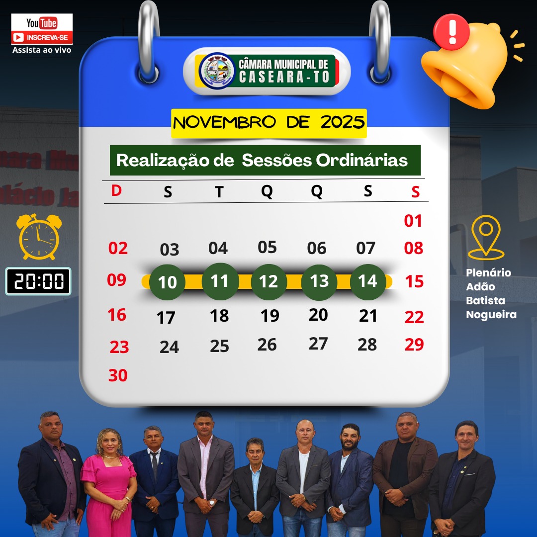 Assunto: Sessões Ordinárias do mês de novembro de 2025, dias 10, 11, 12, 13 e 14 de 2025.